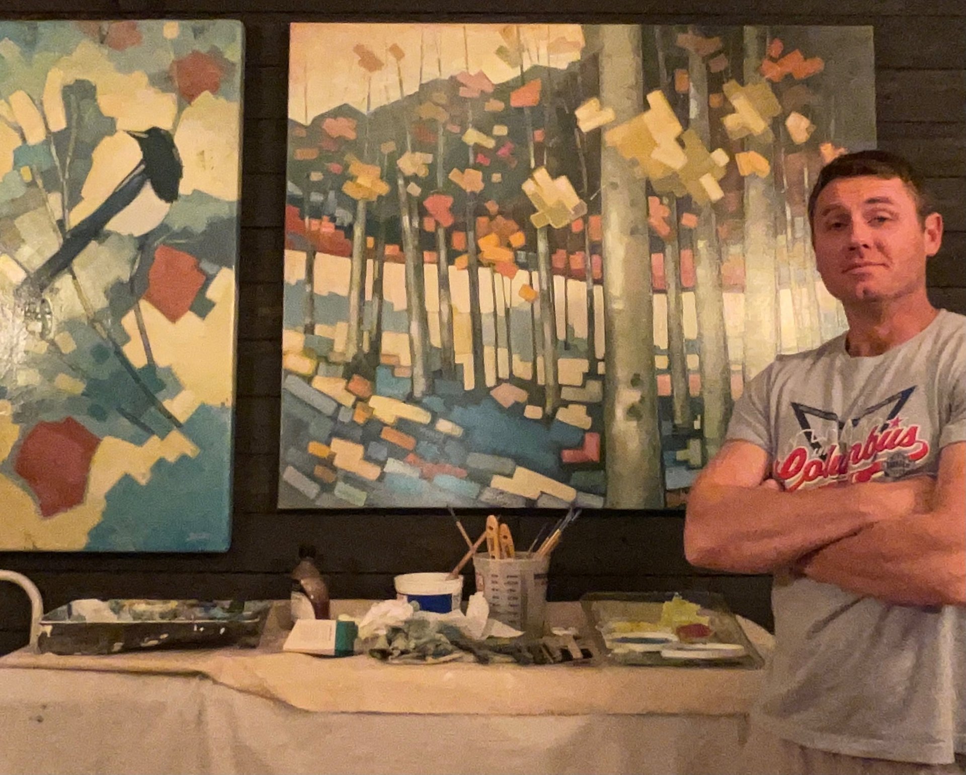 Justin Shaver is a painter based in Grove City, Ohio, known for their work exploring oil painting, charcoal, and other mediums. His work is very illustrative and all includes his own unique style, full of shapes and color. He holds a Bachelor of Fine Arts for illustration from the Columbus College of Art and Design..